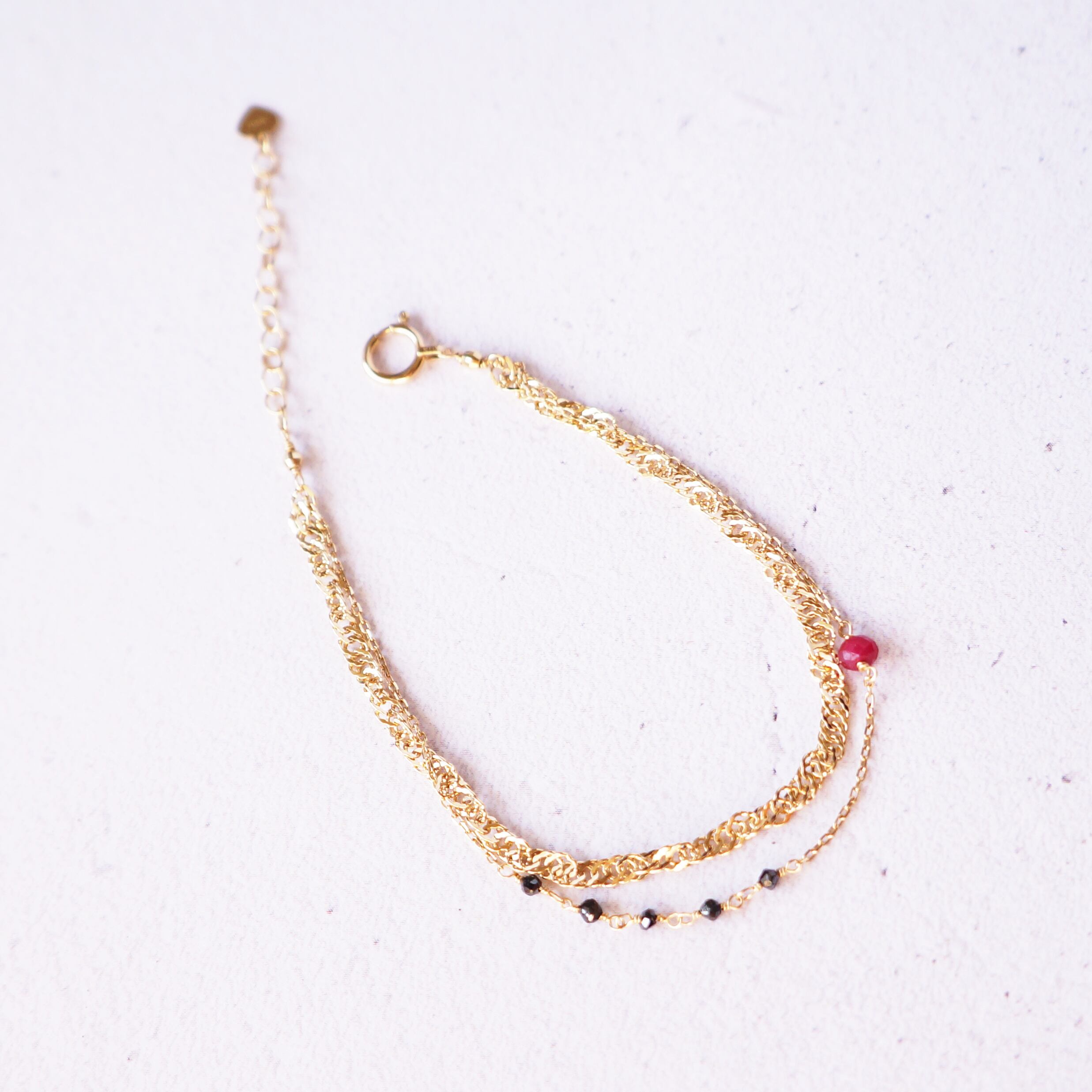 1粒の色鮮やかなルビーがアクセントになったシックなブレスレット