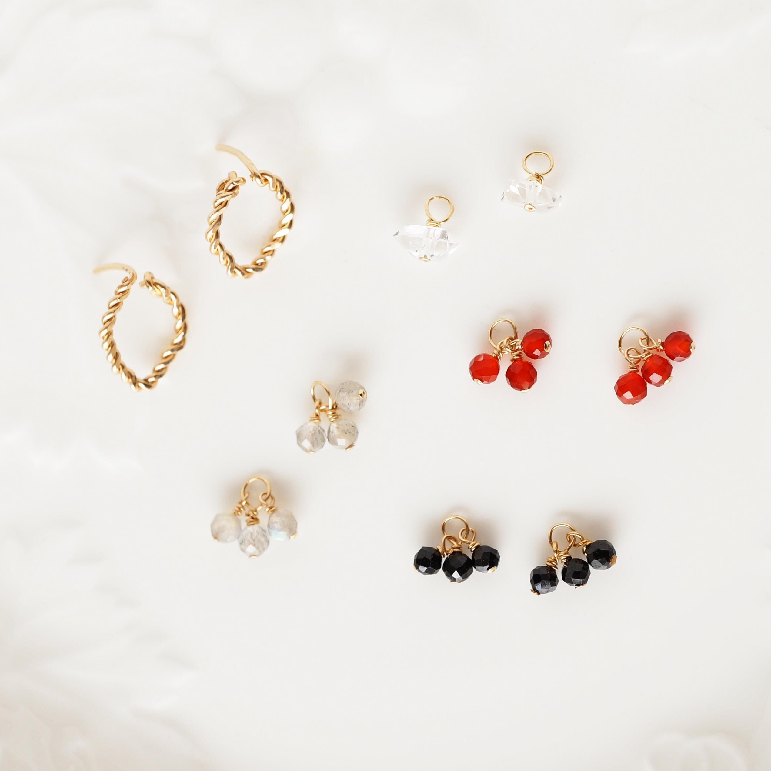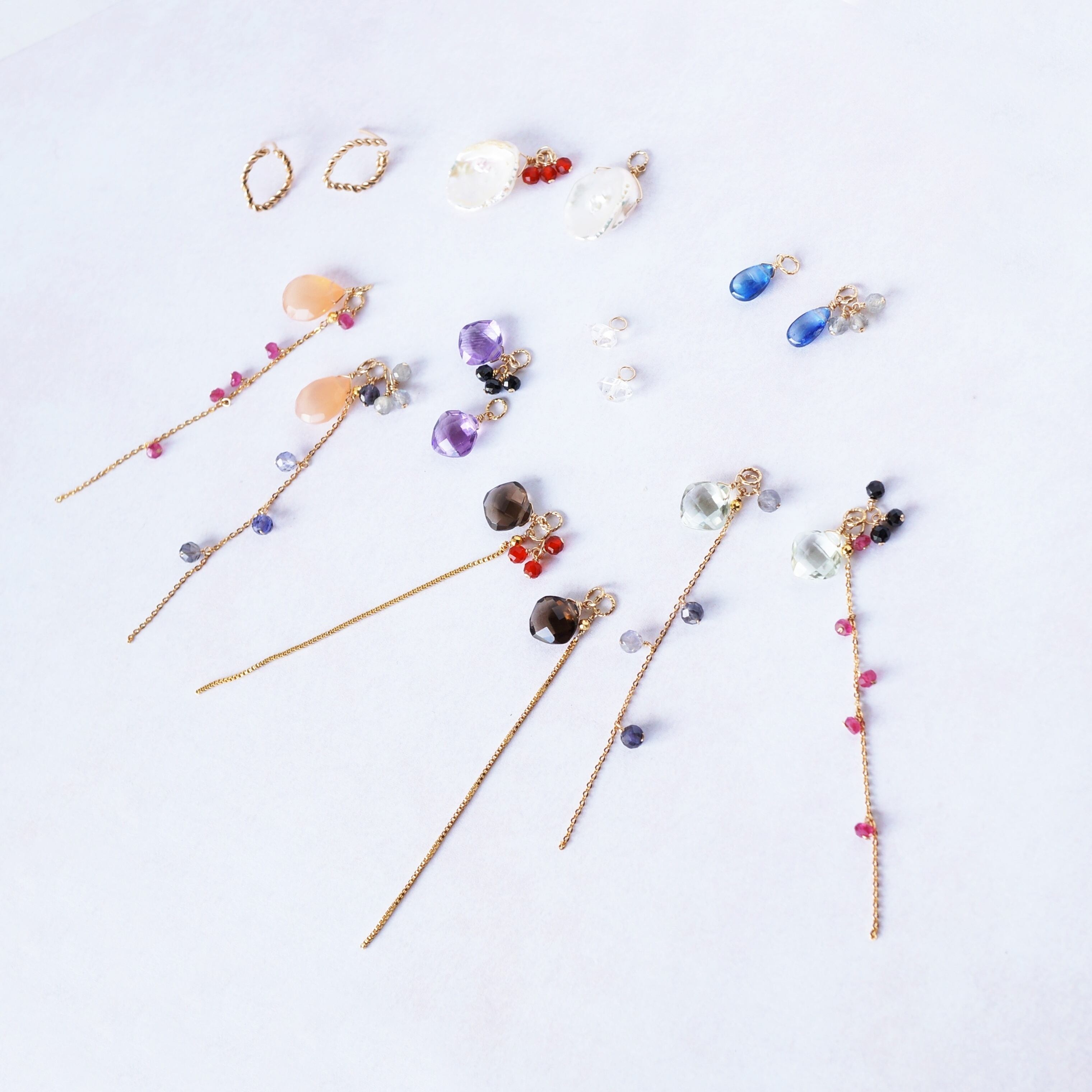 その日の気分によってチャームを変えることができる、普段使いしやすいピアスです。